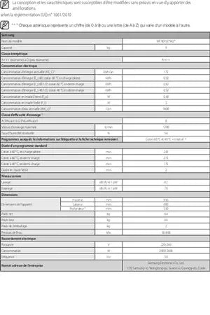 - Capacité 9 kg (volume du tambour 63 L) - Classe A+++
