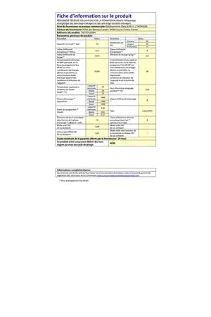 - Capacité 7 kg - (2 personnes) - 72 dB