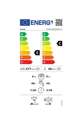 Candy Lave-linge séchant 9/6kg 1400 tours/min csws4962dwe1s - Smart - Lave-linge séchant smart candy csws4962dwe1s avec connectivité nfc : un veritable assistant personnel ! grâce à notre application simplyfi et à la technologie nfc, connectez votre smartphone à votre machine et accédez à des programmes supplémentaires. Interface intuitive digit : un bandeau de commande digital avec affichage du temps restant et départ différé jusqu'à 24 heures. Fonction vapeur : lancée en fin de cycle, la vapeur permet de réduire le nombre de plis et donc le temps de repassage. Elle renforce aussi l?hygiène des textiles et retire les mauvaises odeurs. Le mix power system mélange l'eau à la lessive et pulvérise la solution lessivielle directement au c?ur du tambour. Un lavage parfait en moins d'une heure!