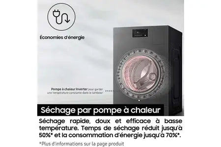 Lavez et séchez votre lessive dans un seul tambour! Le design tout-en-1 intègre un lave-linge et un sèche-linge dans un seul appareil, permettant de libérer votre espace. Il n’y a plus besoin de transférer votre lessive entre deux machines.