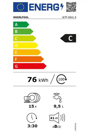 Ce lave-vaisselle Whirlpool W7F HS41 S, couleur argent de 60 CM, offre un rangement de 15 couverts. Il dispose d'un rendement énergétique exceptionnel C avec une consommation d'énergie réduite. Il possède également d'une minuterie régressive numérique, qui vous informe quand le cycle de lavage est terminé. Technologie innovante assurant un fonctionnement parfaitement silencieux qui contribue à la discrétion de l’appareil. Enfin, excellentes performances de nettoyage, avec un lavage incomparable. Ce lave-vaisselle bénéficie également d'un système d'ouverture autmatique de la porte et d'un troisième tiroir modulable.