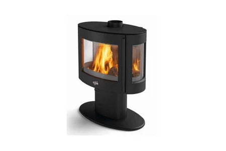 - type : poêle à bois sur pied.