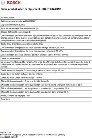 Sèche-linge à condensation Bosch SERENITY WPG2312SFR