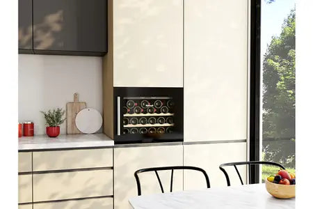 La cave à vin encastrable s'intègre parfaitement à votre intérieur en se fondant dans le décor. Nos modèles sont standard avec des niches en 45 cm et 60 cm. Vous pouvez l'intégrer dans vos armoires ou sous le plan de travail.