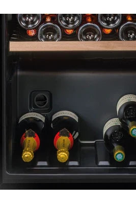 Cette cave est équipée d'amortisseurs qui absorbent les vibrations provenant de l'extérieur et de l'intérieur. Le vieillissement du vin n'est pas compromis et le fonctionnement de la cave est particulièrement silencieux.