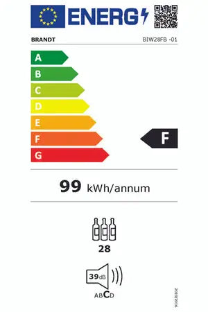 Description La cave à vin BIW28FB de chez Brandt est dotée d'une porte équipée filtre anti-UV. Elle dispose d'une capacité de 28 bouteilles. De plus, elle est équipée de 2 clayettes amovible en bois. Capacité Cette...Prix normal 509,99 €Prix normal 509,99 € -