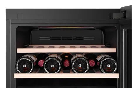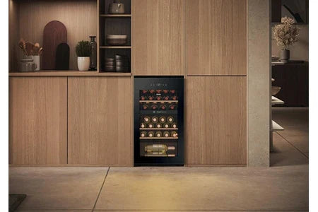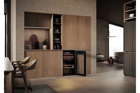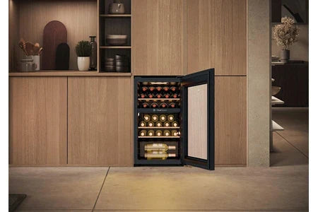 Les points forts Capacité 49 bouteilles - Classe G - 39dB 1 zones de températures - 4 clayettes et une demi-clayette en bois fronton inox Contrôle sensitif avec affichage digital LED bleu Dimensions (H-L-P) 82x59.5x57.2 cm...Prix normal 999,00 €Prix normal 999,00 € -