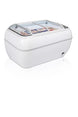 Congélateur de supermarché permettant de gagner de la place au sol, avec un dégivrage automatique Mesures et contenu : Plage de température : -24 à -18 / -1 à 15 °CClasse climatique : 3Poids brut / net : 125 / 85 kgVolume brut / net : 425 / 334 lTotal Display Area : 0.65 m²Design et matériaux : Nombre et type de couvercles : 2 couvercles coulissants incurvés verre trempéSéparateurs : Divider systemVitrage de sécurité : OuiCouleur de tablette : BlancPieds : 4 pieds ajustablesFinition extérieure : BlancFinition intérieure : Acier laquéÉclairage intérieur : LEDFroid et fonctions : Type de régulation : ÉlectroniqueType de réfrigération : StatiqueType de dégivrage : AutomatiqueFluide frigorigène : R290Charge de gaz : 80 gPuissance et consommation : Puissance consommée : 267 WTension / Fréquence : 220-240/50 V/HzNiveau sonore : 46 db(A)Thermomètre : OuiDimensions : Dimensions intérieures (LxPxH) : 1190 x 605 x 620 mmDimensions extérieures (LxPxH) : 1470 x 812 x 915 mmDimensions emballées (LxPxH) : 1530 x 1000 x 1050 mmCharge conteneur 40 pieds : 30 pces.