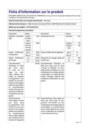 Grâce aux technologies avancées qui améliorent la performance et réduisent le temps du cycle, les cycles de lavage dépassent les exigences minimum de la classe énergétique A de 20%.