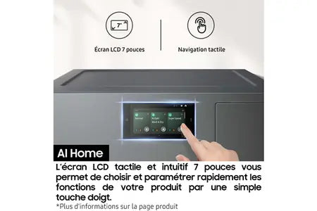 - AI Wash & Dry : lavage & séchage intelligent - Ecran LCD tactile et intuitif à 7 pouces