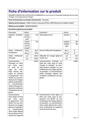 - Capacité lavage 9kg / séchage 6kg - Classe énergétique A