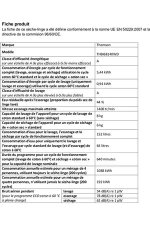 Lave-linge séchant Thomson ENCASTRABLE - THBI1468WD