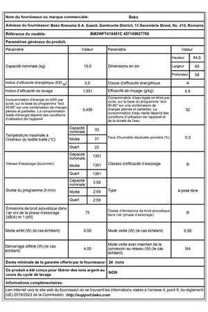 Lave-linge hublot Beko BM3WFT410451C Energy Spin