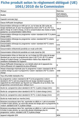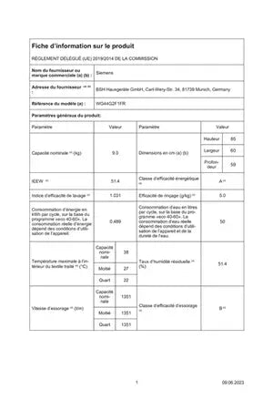 Fiche d'information sur le produit Les points forts Capacité 9 kg (tambour 66 L) - Classe A+++ -20% Essorage variable jusqu'à 1400 tours/min Départ différé / Affichage du temps restant Fonction Woolmark Blue - Fonction SteamCare...Prix normal 456,99 €Prix normal 456,99 € -