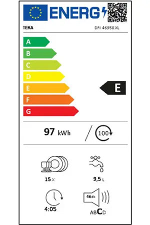 • Consommation d'eau 9,5 L/cycle - Classe énergétique E