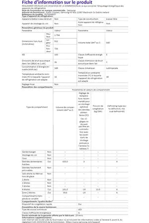 - Volume 640 L - Dimensions (HxLxP) : 178x91.2x72.6 cm - Classe E - 36 dB