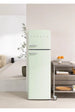 il rappelle l'esthétique des premiers électroménagers des années 50 avec toute la technologie actuelle : couleurs pastel, finitions arrondies, stylisées. ce réfrigérateur congélateur a un volume total de 246l, dont 194l pour son réfrigérateur et 52l dans son congélateur 4 étoiles.