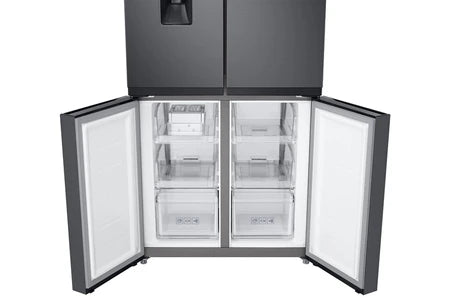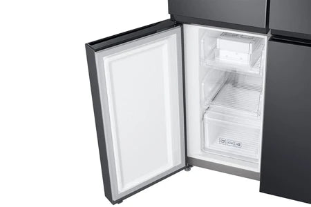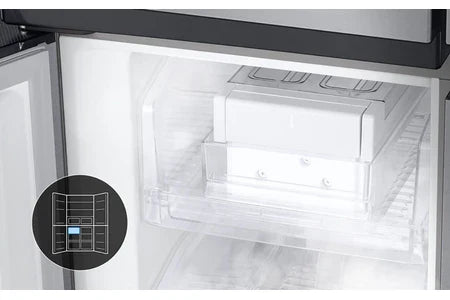 Le design moderne de ce réfrigérateur se caractérise par un extérieur minimaliste avec des portes planes et un écran intégré. Sa finition simple et élégante est accentuée par des poignées intégrées.