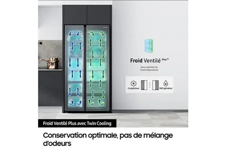 Réfrigérateur américain Samsung Refrigerateur combine RS6EDG5403S9 ventile (no frost) congélateur A cote 635 L