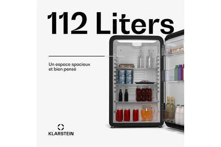 Réfrigérateur bar KLARSTEIN Audrey Evo Réfrigérateur 112 L silencieux compact Mini frigo Mini bar Design rétro Noir