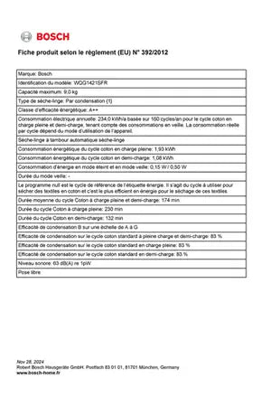 Sèche-linge pompe à chaleur Bosch WQG1421SFR SERINITY