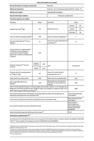 Sèche-linge pompe à chaleur Electrolux EWHI619G5BO 9 kg