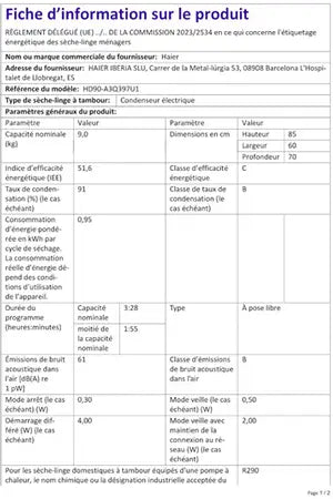 Sèche-linge pompe à chaleur Haier HD90-A2959R-FR