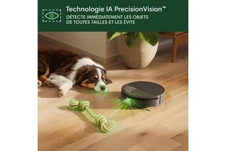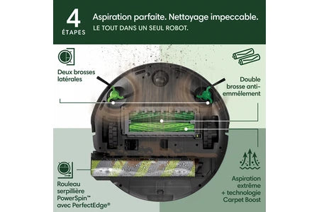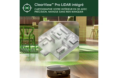• Rouleau serpillière PowerSpin™ avec PerfectEdge® Puissance d’aspiration 175 fois supérieure Lavage des sols 10 fois fois plus efficace + SmartScrub Lavage et séchage avec la Base AutoWash™ + le rouleau serpillière chauffant Technologie IA PrecisionVision™ + ClearView™ Pro LiDAR Détection automatique des tapis/moquettes + protection de serpillière exclusive