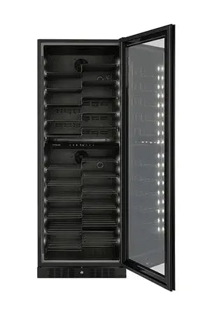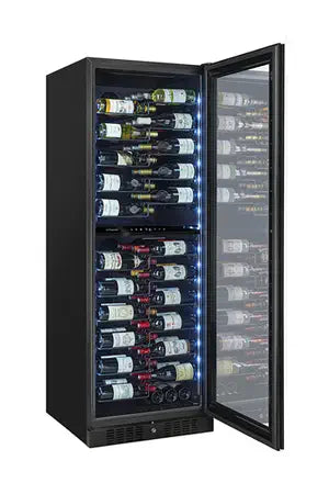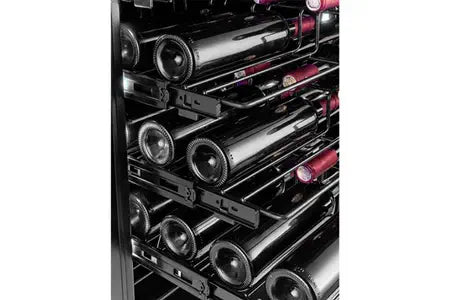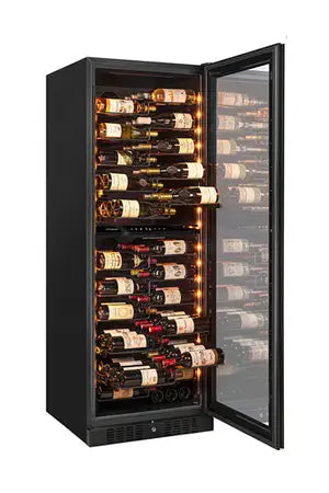 L'Avintage Gallery est une cave à vin noire élégante dotée d'une double zone de température, pouvant accueillir jusqu'à 131 bouteilles grâce à son système de refroidissement par brassage. Elle possède une porte vitrée réversible et sécurisée, un double vitrage anti-UV en verre trempé de couleur grise, ainsi que 11 clayettes coulissantes qui permettent une présentation horizontale des bouteilles pour une visibilité optimale des étiquettes. Munie d'un éclairage LED blanc avec interrupteur et d'un affichage électronique, elle comprend aussi un système anti-vibration pour préserver au mieux le vin. Compatible avec l'application Vinotag, elle assure une expérience à la fois moderne et pratique.
