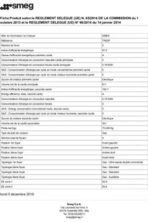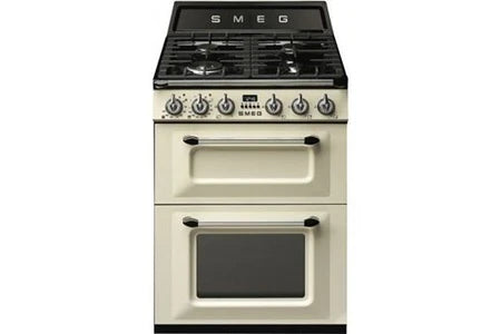 Cette cuisinière mixte Smeg TR62P est composée d'une table gaz de 4 foyers, d'un four principal (en bas) chaleur tournante d'une capacité de 61 litres et d'un four secondaire statique d'une capacité de 36 litres. Pour plus de confort, les fours sont équipés de l'Email ever clean qui facilite le nettoyage. Pour plus de sécurité, la table gaz est dotée de la sécurité par thermocouple.