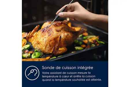 Grâce à cette sonde, tenez vous informé de la situation à l'intérieur de votre aliment. De plus elle éteint le four lorsque le plat est prêt.