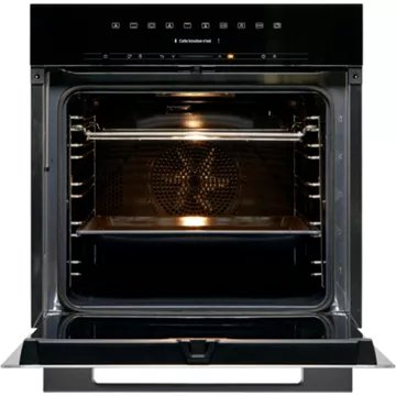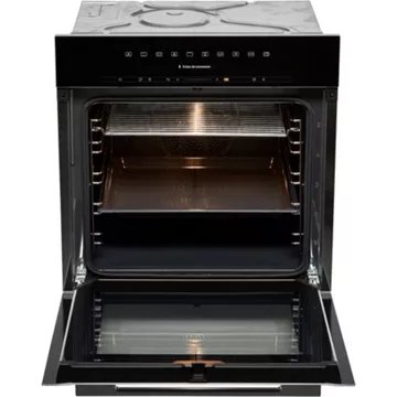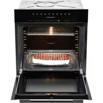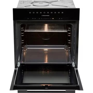 Grâce à son volume de 76 L, la cavité vous servira à cuisiner pour toute la famille. Elle intègre également cinq niveaux et une paire de rails télescopiques, ce qui lui confère une grande polyvalence. Ce four bénéficie d'une porte à ouverture et fermeture douces, vous ne risques donc pas de vous brûler en récupérant votre plat.