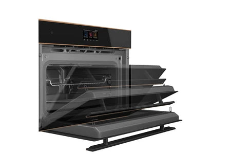 Ce four se distingue par élégance et sa modernité, avec une finition noir Eclipse et cuivre, parfaitement en accord avec les autres appareils de la gamme Dolce Stil Novo.