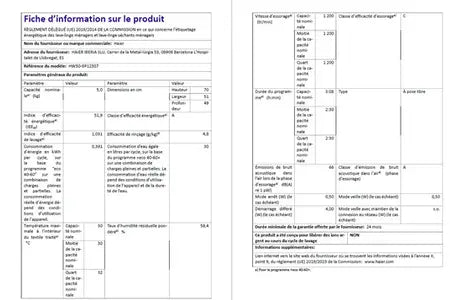 - Capacité 5 kg (2 personnes)- Tambour 32 L