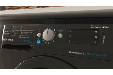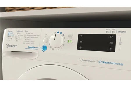 La machine lavante-séchante Indesit BDE 86435WVFR  dispose de 17 programmes dont le programme Laine, d'une option Push & Go permettant de laver et sécher votre linge quotidien en une seule touche et d'un moteur induction robuste, durable et silencieux.