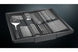 Le tiroir vario accueille aussi bien vos couverts que vos tasses espresso. Il vous offre un espace de rangement supplémentaire. Grâce à son design spécial, il accueille non seulement les couverts, mais aussi les louches, les couverts à salade ou les petites tasses à café. Ne rangez plus vos couverts dans le panier inférieur grâce à ce nouveau tiroir qui accueille jusqu'à 14 couverts standard.